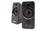 Con unas dimensiones reducidas y formato vertical, estos altavoces se integran fácilmente en escritorios y estanterías sin ocupar demasiado espacio. Su acabado en color negro aporta una estética discreta y funcional, apta para todo tipo de configuraciones.
