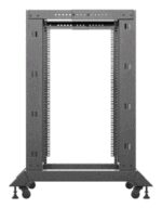Rack o bastidor independiente de tipo abierto con capacidad para 18U, diseñado para alojar equipos de red, servidores o sistemas de telecomunicaciones. Soporta hasta 600 kg de peso, ofreciendo una estructura robusta y fiable.