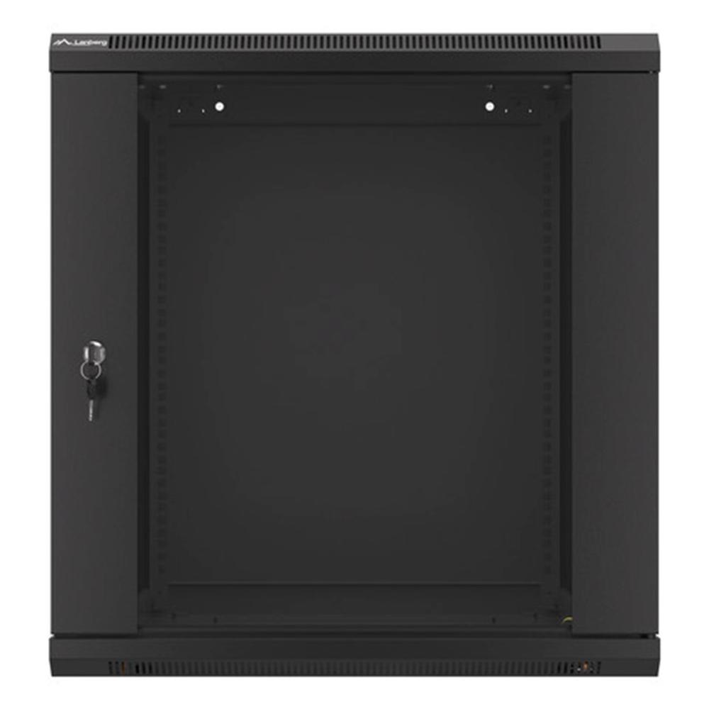 Armario lanberg mural rack 19 pulgadas 12u – 600×600 auto ensamblado negro puerta de cristal