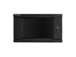 Montaje en pared, gabinete Lanberg de una sola sección WF01-6606-10B esuna solución diseñada para expandir redes, instalación de cableado y equipos en tamaño 19 con máx. 60kg. Capacidad de carga. Se puede utilizar en redes, salas de servidores, pequeñas y medianas empresas. También puede funcionar en sistemas de baja tensión como redes de televisión por cable, sistemas de alarma, sistemas de protección contra incendios y sistemas de control de acceso, CCTV y vigilancia IP. El diseño apropiado permite un autoensamblaje simple. El mueble se caracteriza por su grado de protección IP20, puerta frontal de apertura con posibilidad de girar a 180 ° con cerradura, paneles laterales extraíbles (cerraduras incluidas). El gabinete tiene un panel de entrada de cables en la cubierta superior e inferior. Este producto está hecho de acero laminado en frío de alta calidad. La estructura del armario para el autoensamblaje es en paquete plano lo que facilita el transporte. Además, el paquete incluye accesorios adicionales para soportes de riel, tuercas enjauladas M6 y paneles de entrada ciegos.