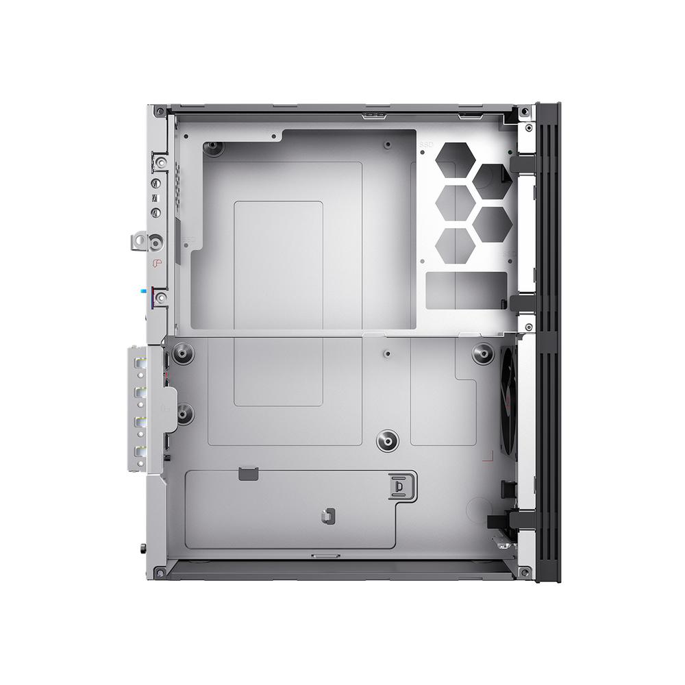 A pesar de su tamaño compacto, la T370 Slim permite montar **discos SSD de 2,5″**, refrigeración superior y fuente TFX. Ofrece soporte para ventilador superior de 80 mm, garantizando una disipación adecuada para configuraciones de oficina o uso diario.
