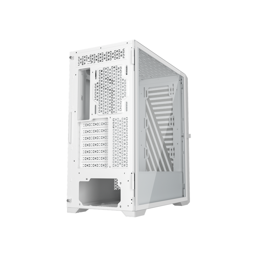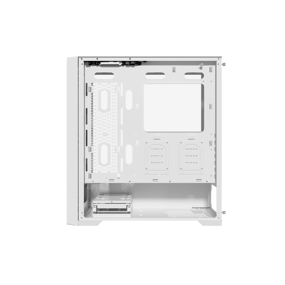 Su panel lateral está realizado en su totalidad de cristal templado con instalación de bisagra para garantizar un fácil acceso y evitar caídas o roturas del mismo durante la manipulación. Además de poder mostrar todos los componentes del ordenador.