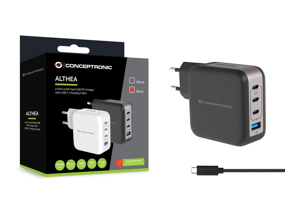 P/N: ALTHEA18B Cargador de pared conceptronic althea18b 100w 3x usb tipo c 1x usb tipo a