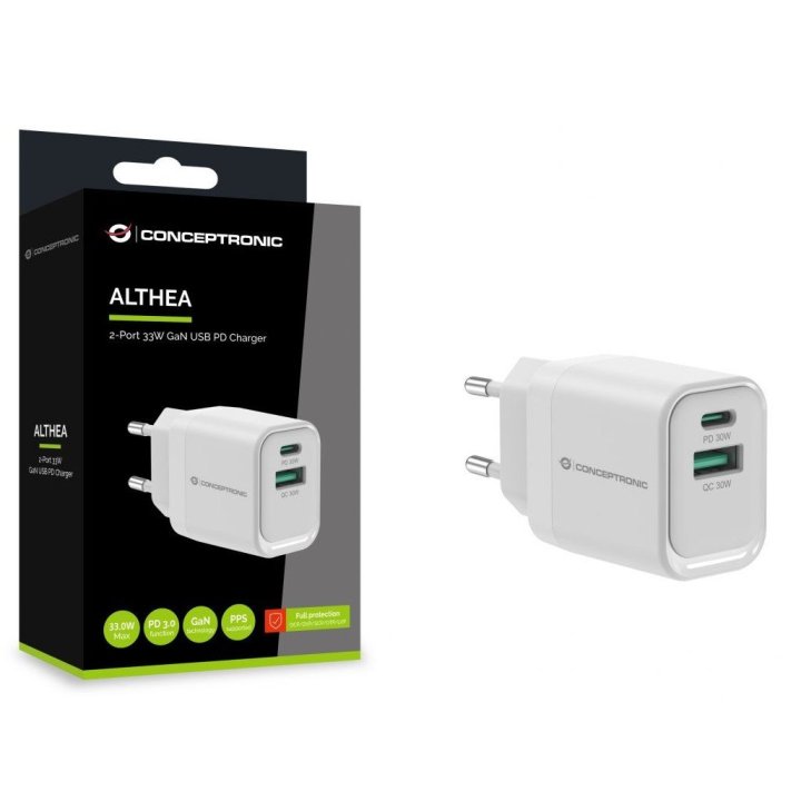 P/N: ALTHEA19W33 Cargador de pared conceptronic althea1933 33w 1x usb tipo x 1x usb tipo a blanco