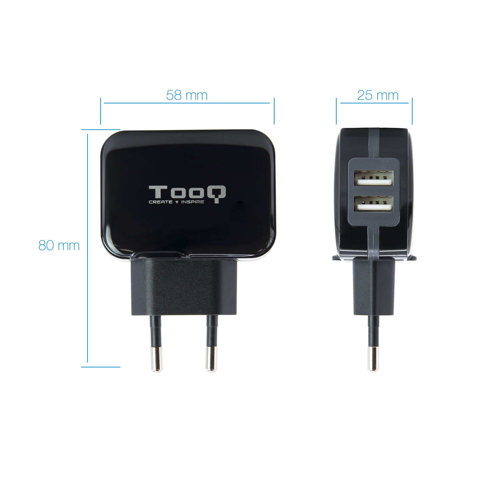 Cargador pared tooq usb tqwc – 1s02 2xusb 3.4 a(total) ai – tech negro