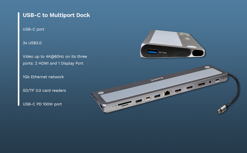 El dock multipuerto USB-C EW1150 está diseñado para quienes necesitan maximizar la conectividad de su portátil u ordenador desde un solo puerto Type-C. Su diseño compacto y versátil permite conectar periféricos, pantallas, almacenamiento y red con la máxima fluidez, ideal tanto para entornos de trabajo como de entretenimiento.