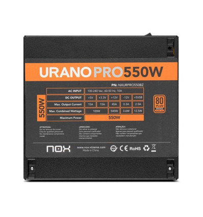 P/N: NXURPRO550BZ Fuente alimentacion nox urano pro gaming atx 550w