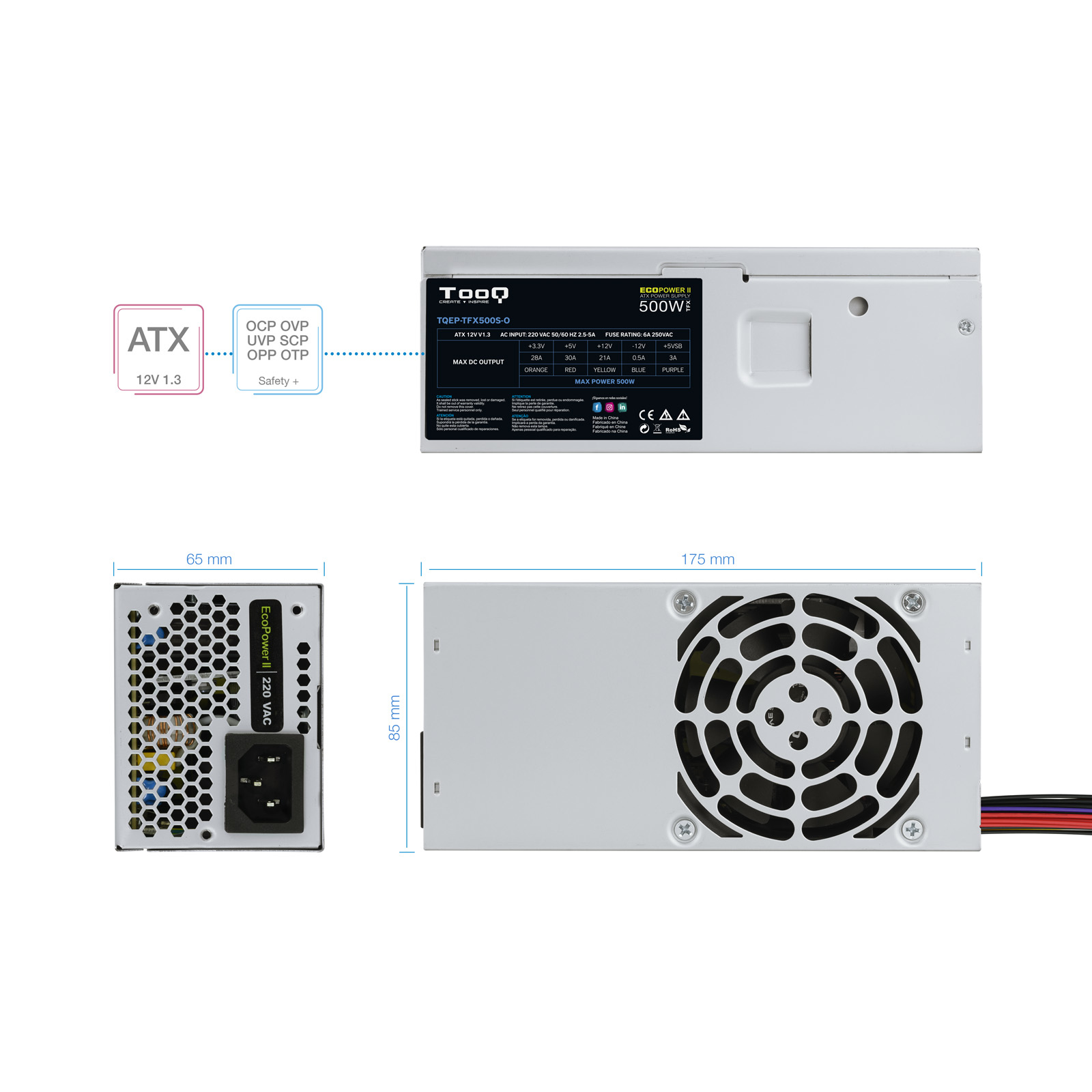 P/N: TQEP-TFX500S-O Fuente alimentacion tooq ecopower ii tfx 500w oem