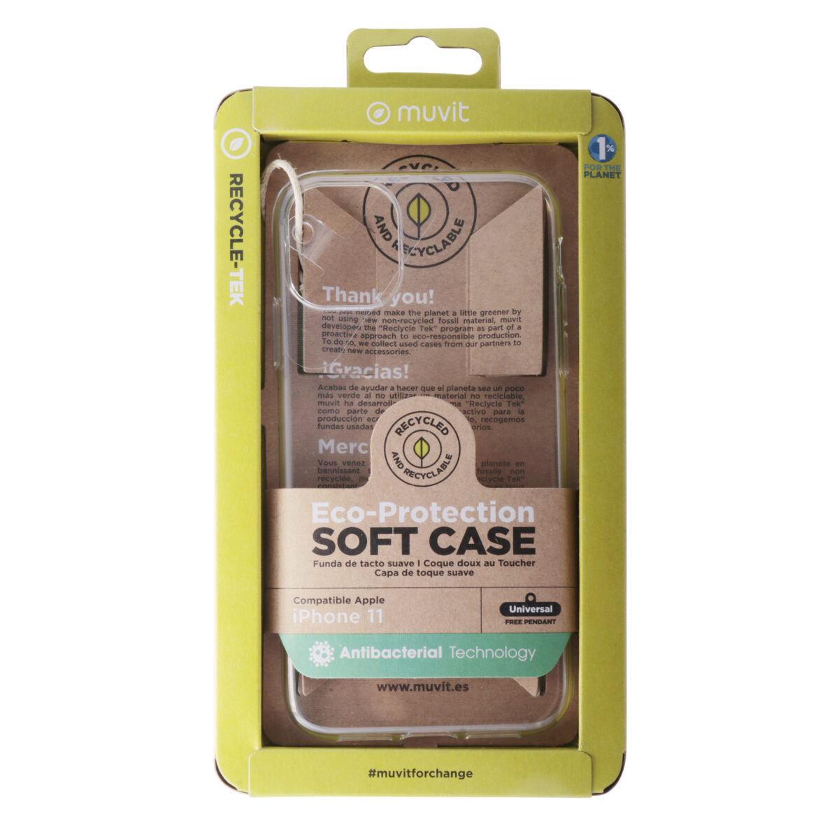 Funda muvit recycletek antibacteriana para apple iphone 11 transparente