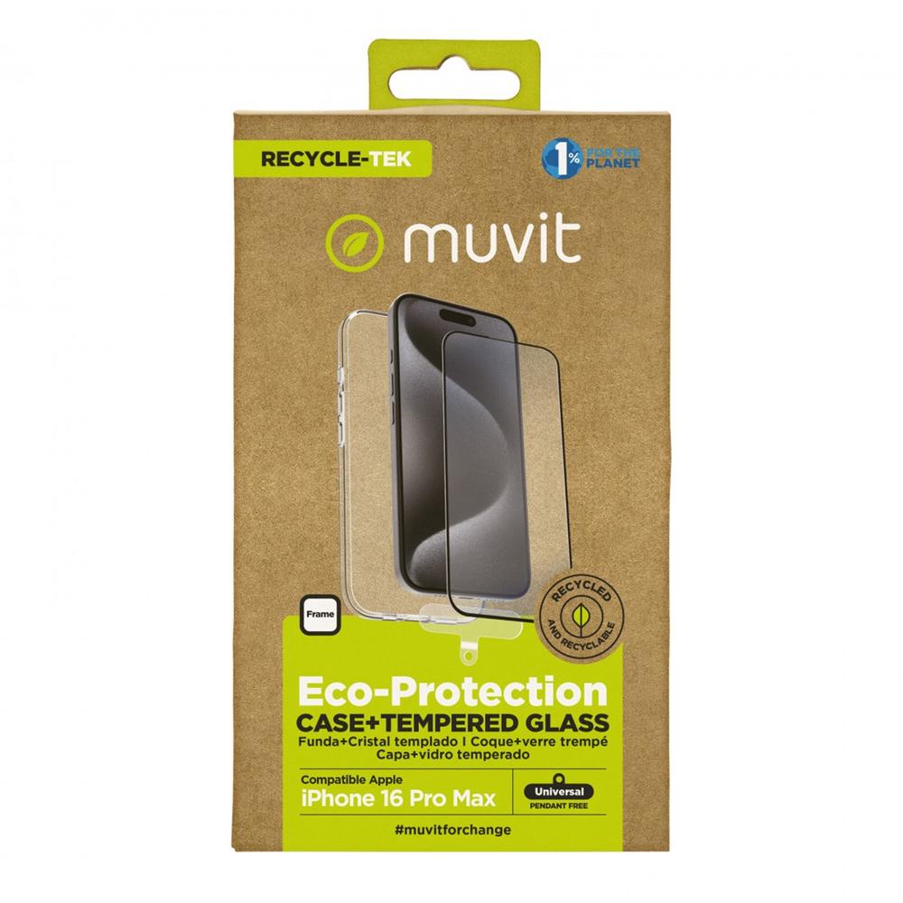 Funda muvit recycletek para apple iphone 16 pro max transparente + protector cristal templado marco negro