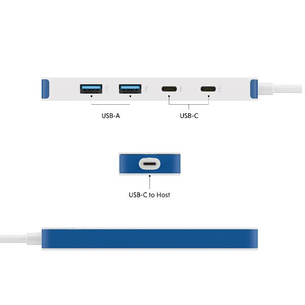 Este hub integra 2 puertos USB-C y 2 puertos USB-A con tecnología USB 3.2 Gen 1, permitiendo velocidades de transferencia de hasta 5 Gbps. Su compatibilidad con dispositivos modernos lo convierte en una opción versátil para portátiles, sobremesas y tablets con conexión USB-C.