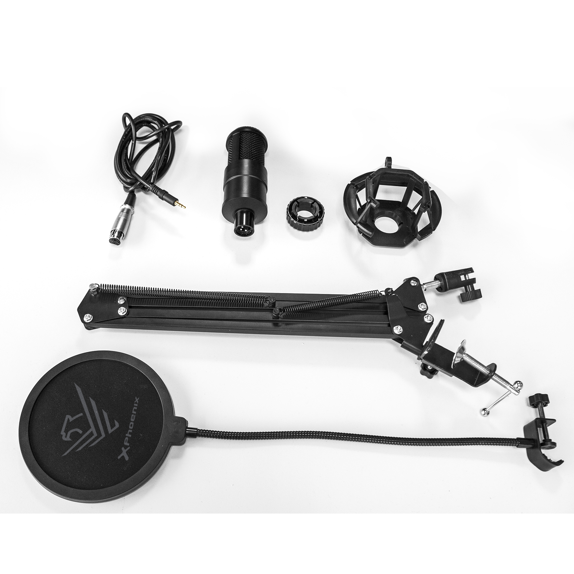 Kit microfono phoenix streamcast pro gaming conector jack – brazo articulado – filtro antipop y montura antivibración
