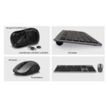 un interruptor DPI con una resolución óptica de 800-1200-1600 DPI. Tanto el teclado como el ratón funcionan con un receptor combinado USB-C y USB-A y están equipados con un sistema inteligente de ahorro