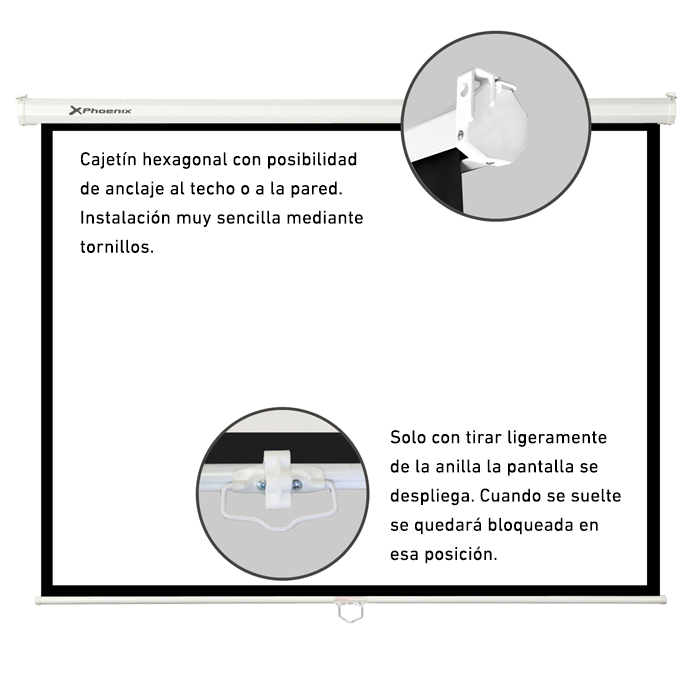 Compra Pantalla manual videoproyector pared y techo de Phoenix technologies al mejor precio y calidad en PcLandia.