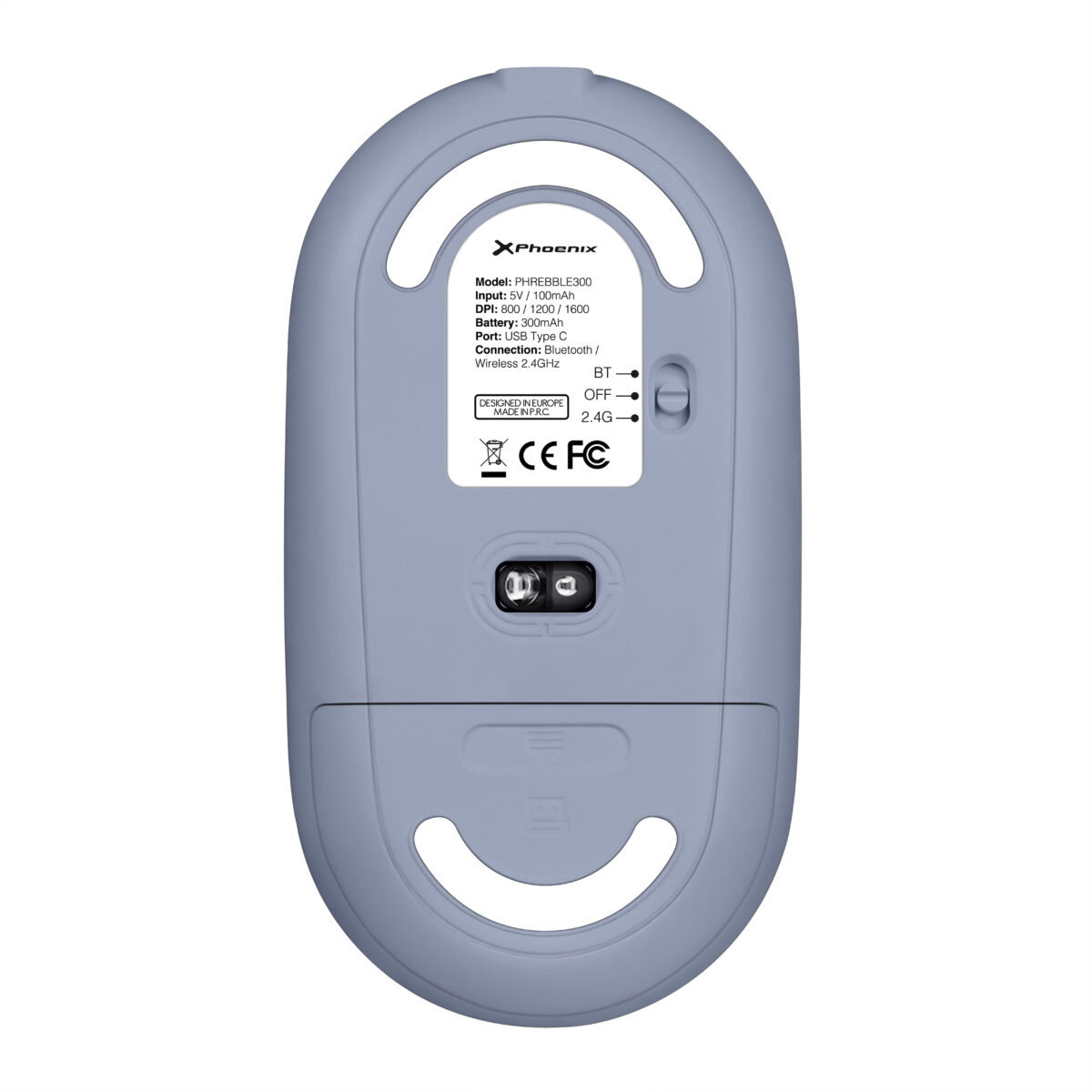 P/N: PHREBBLE-BL Phoenix rebble ratón inalambrico bluetooth y 2.4 ghz hasta 3 dispositivos con receptor usb clic silencioso para portátil notebook pc chomebook mac color azul