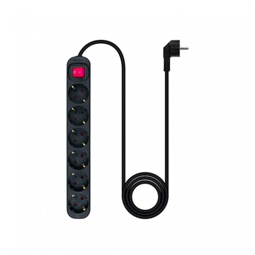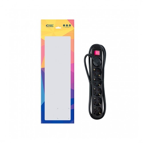P/N: 10.37.0006-BK Regleta 6 tomas 1.4m nanocable con interruptor negro - 250v - proteccion