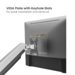 El brazo para monitor incluye una abrazadera VESA de liberación rápida que soporta patrones de montaje de 75×75 mm y 100×100 mm para una compatibilidad fácil. Se fija a escritorios de hasta 80 mm de grosor con una